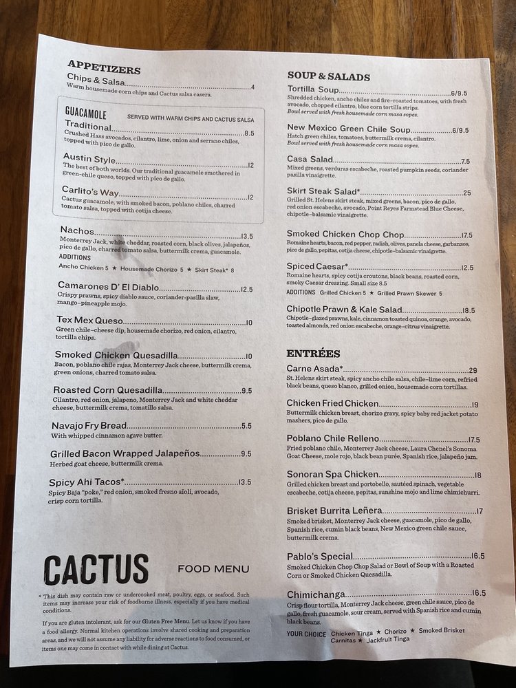 Cactus Restaurants - Kirkland Menu (2025 Update)